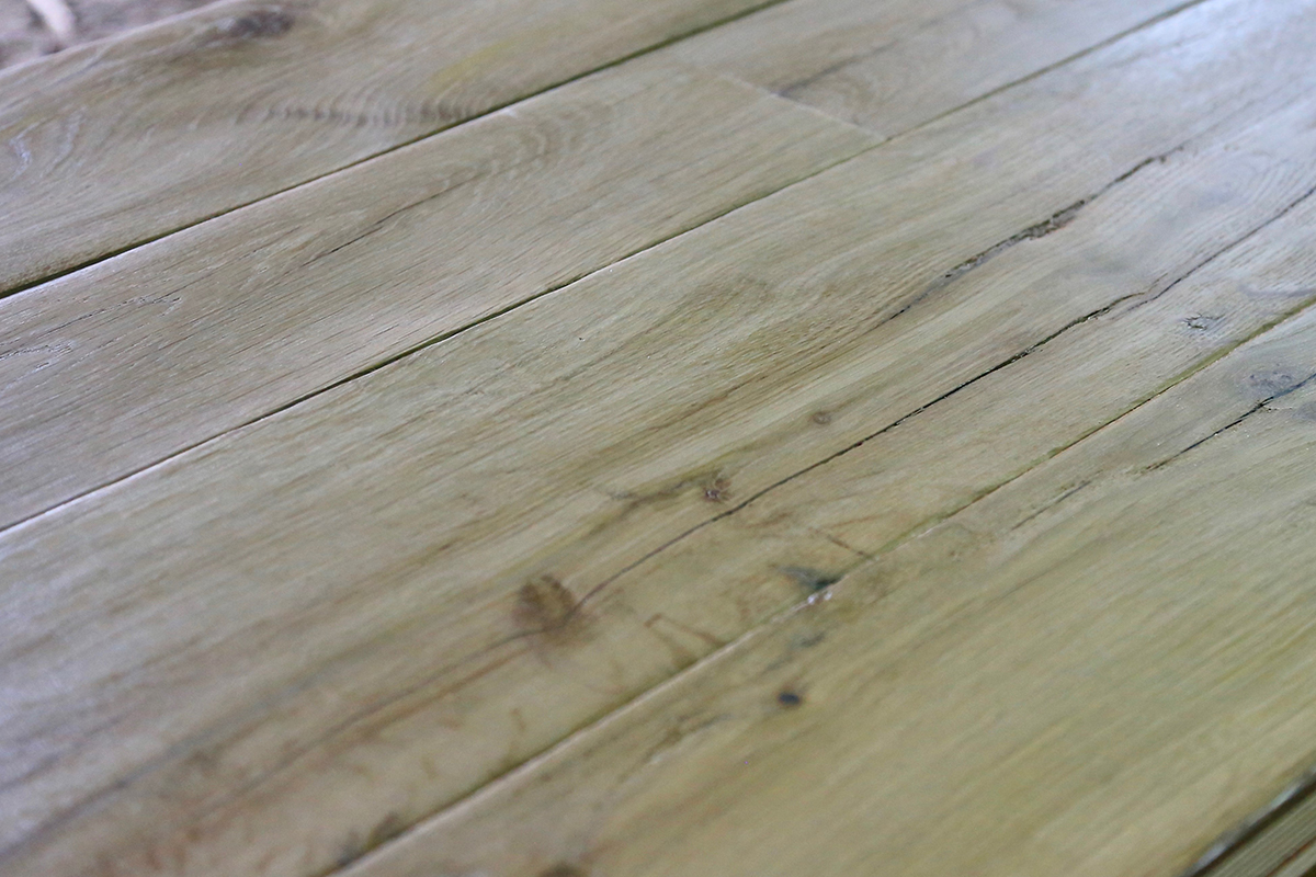 This is where an old plank has been planed on the original top surface, to create new fresh, clean timber. However, it will show obvious evidence of its age, old nail holes, small shakes etc. We describe this as a PAR texture. We offer it with this finish which will need sanding down and sealing once laid.